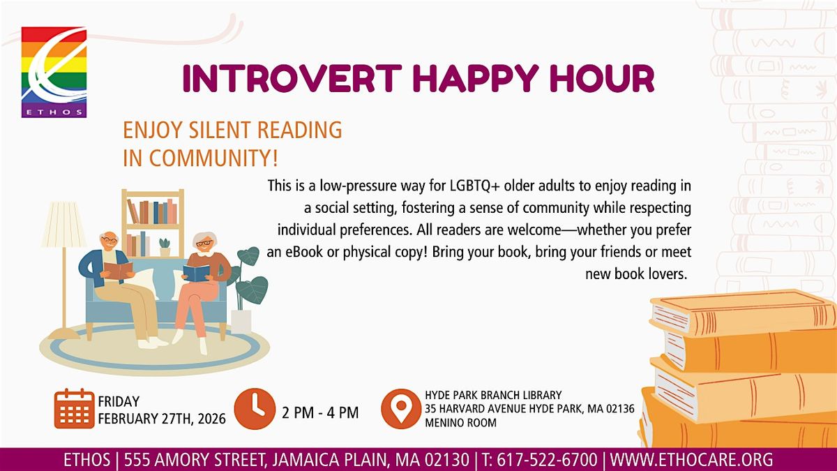 Ethos' Pride Initiative provides safe spaces for LGBTQ+ older adults to enjoy programs together and meet new people. This is our rendition of a silent book club. This group is designed for introverts and book lovers seeking community without the pressure of assigned reading or forced discussion, offering a way to connect with others over the shared joy of reading.