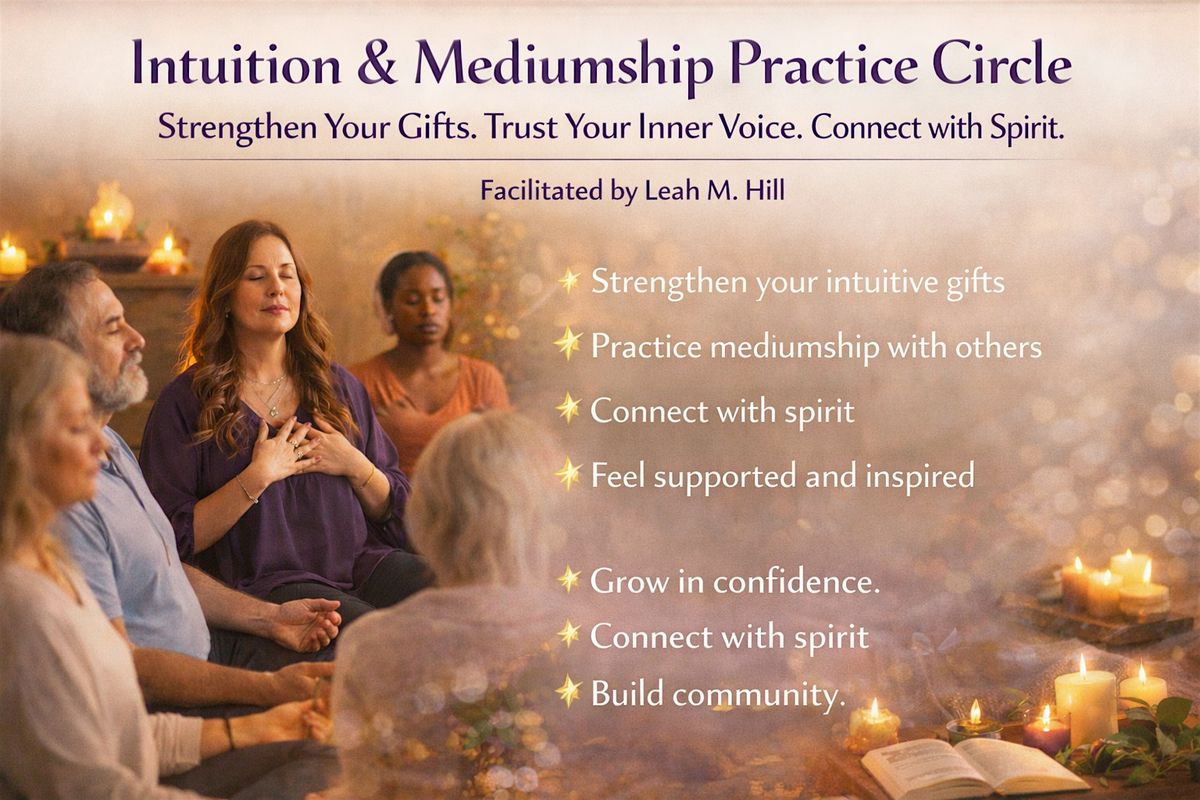 Facilitated by Leah M. Hill-Join us for the Intuition & Mediumship Practice Circle, a supportive, experiential gathering designed to help you develop your intuitive abilities and expand your connection with the spirit world. Whether you're just starting your journey or looking to deepen your skills, this circle offers a safe and welcoming space to explore your gifts.