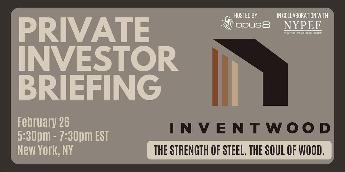 Opus8 is hosting a small, invitation-only virtual private investor briefing featuring InventWood, a materials company commercializing SUPERWOOD™, a category-defining biomaterial that delivers the strength of steel with the soul of wood.