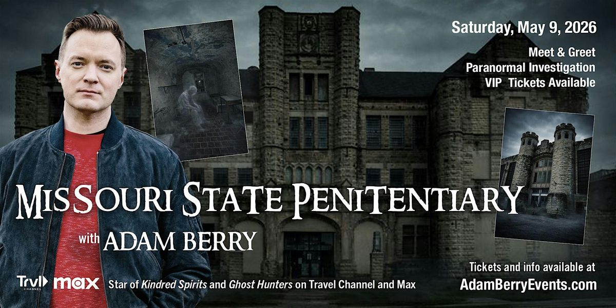 Join Adam Berry from Kindred Spirits and Ghost Hunters for a one night only event at the world famous Missouri State Penitentiary Saturday, May 9, 2026!