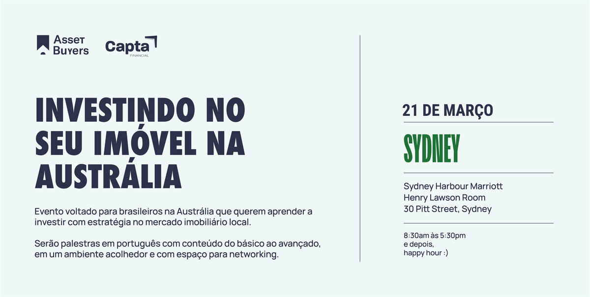 Esse evento foi pensado especialmente para brasileiros que vivem na Austrália e desejam entender, com clareza e profundidade, como investir de forma estratégica no mercado imobiliário local. Ao longo do dia, você participará de duas palestras em português, com conteúdo que vai do básico ao avançado — abordando conceitos, práticas e decisões reais. Tudo isso em um ambiente acolhedor, com estrutura completa, espaço para networking e um happy hour a partir das 5pm, para quem quiser continuar a troca de ideias até mais tarde.