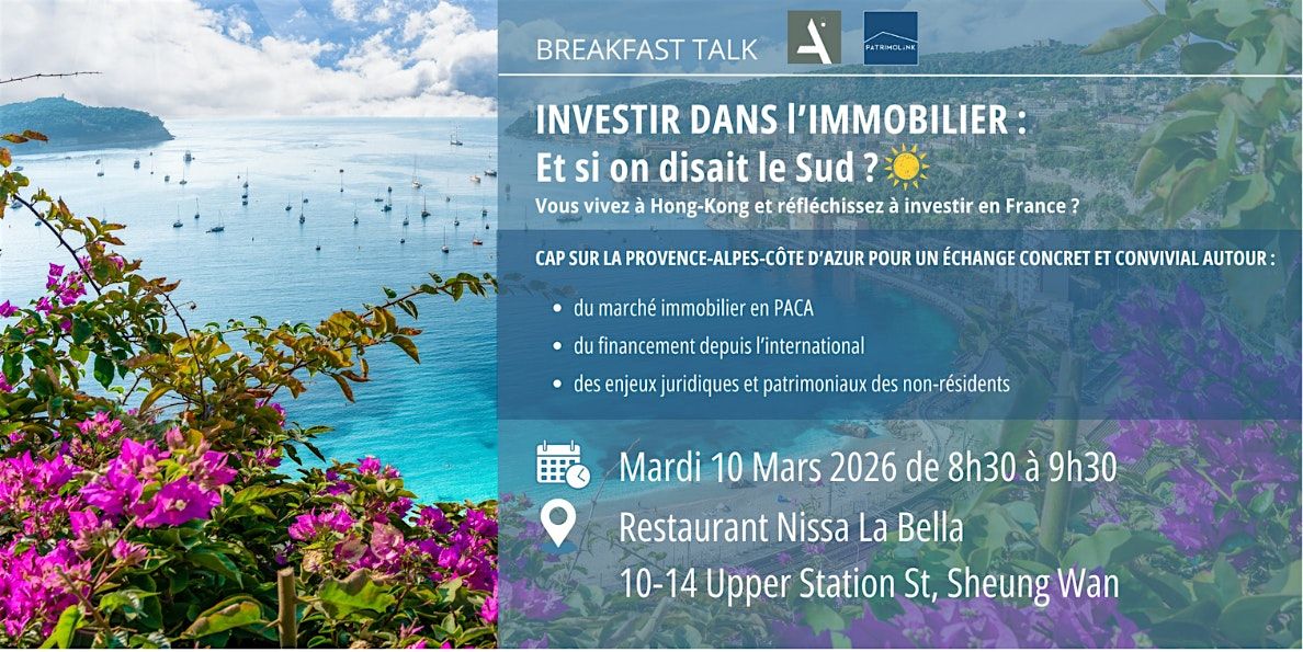 Ce breakfast talk s’adresse aux non-résidents qui souhaitent découvrir concrètement les opportunités et les clés d’un investissement immobilier réussi dans le Sud de la France.
