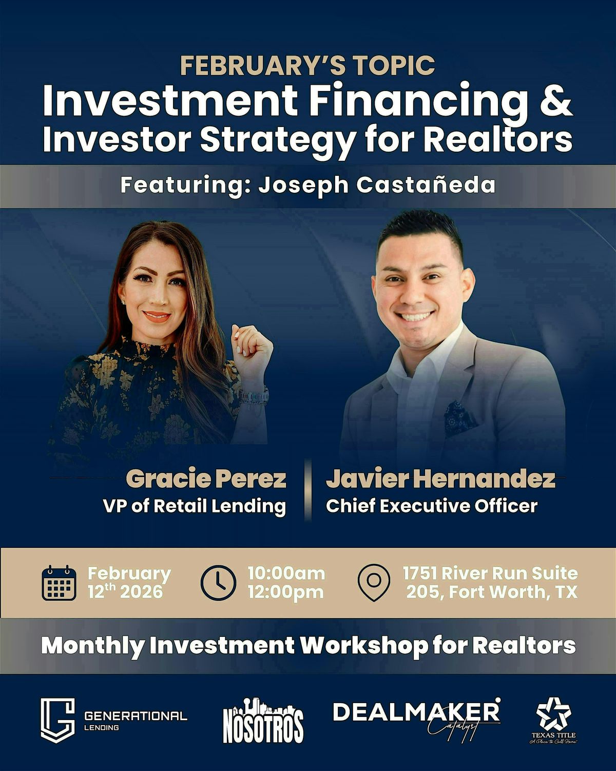Join Us for Investment Financing & Investor Strategy for Realtor!