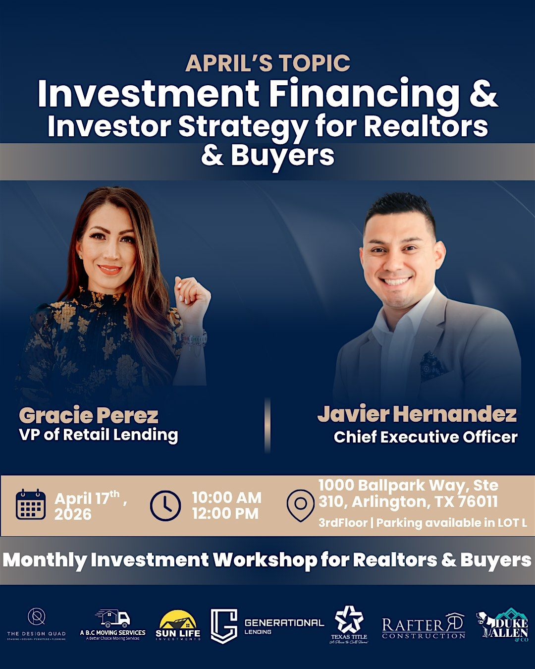 Investors- Join us and learn what options are available for investment financing and learn some tips along the way!