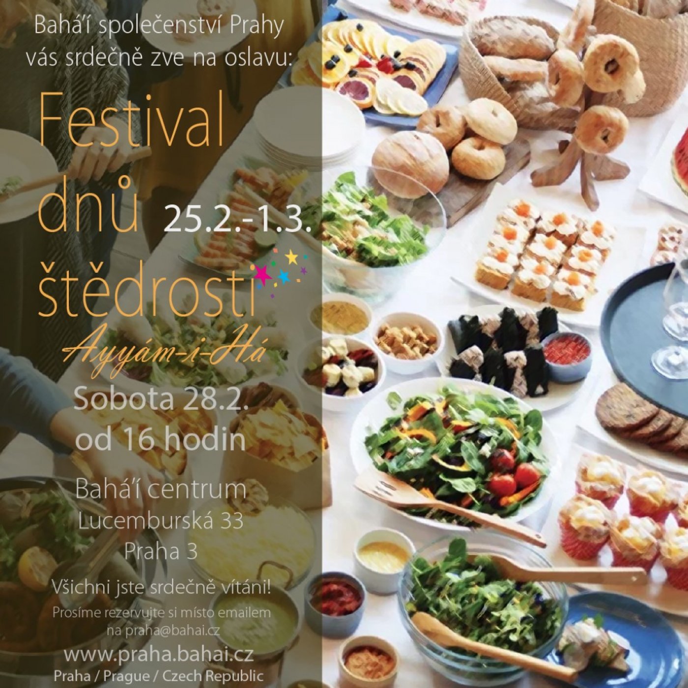 we would like to invite you to the celebration of the Bahá’í days of generosity ‘Ayyám-i-Há’ which will take place on Saturday, February 28 at 4 p.m. at the Bahá’í center, Lucemburská 33, Praha 3