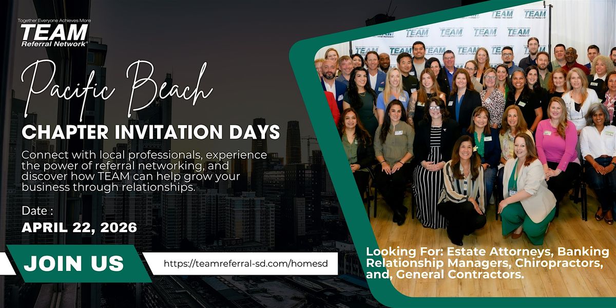 Join the Pacific Beach chapter of the TEAM Referral Network in professional building off Garnet.