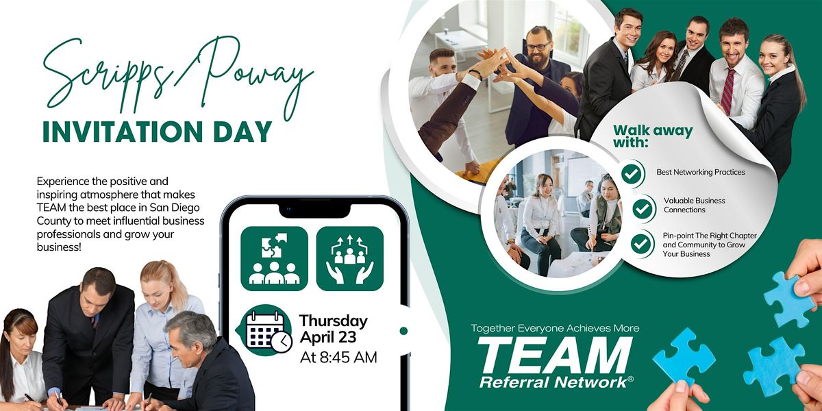 Entrepreneurs, business owners, and professionals in the Scripps/Poway and surrouding areas seeking to expand their network with diverse expertise and drive business growth through collaborative opportunities.