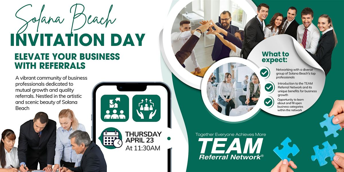 Entrepreneurs, business owners, and professionals in the Solana Beach and surrouding areas seeking to expand their network with diverse expertise and drive business growth through collaborative opportunities.