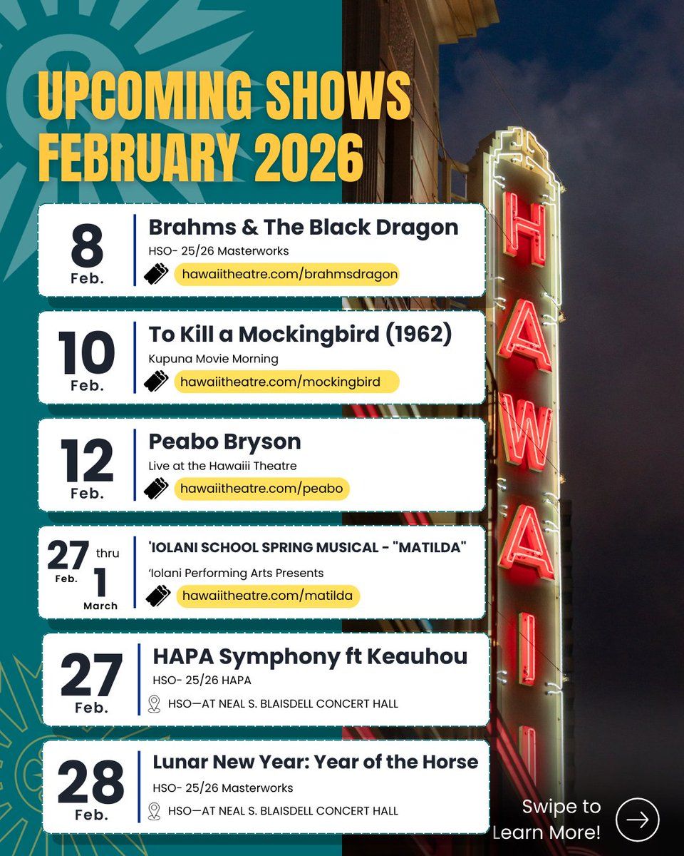 🎉 Welcome to Iolani School Spring Musical: Matilda - The Musical at Hawaii Theatre Center, where the impossible becomes possible and dreams take flight! 🏛️ Join us at Hawaii Theatre Center in the heart of Honolulu, HI for an event that will redefine your expectations. 📅 On February 28th, 2026 at 07:00 PM, witness the transformation of space and time into something truly magical. ✨ It's a curated experience combining the best of innovation, entertainment, and community spirit, creating moments that will be remembered for years to come. Whether you're a first-time visitor or a seasoned enthusiast, prepare to be amazed. 🎊 Book now to ensure your place in this unforgettable experience!