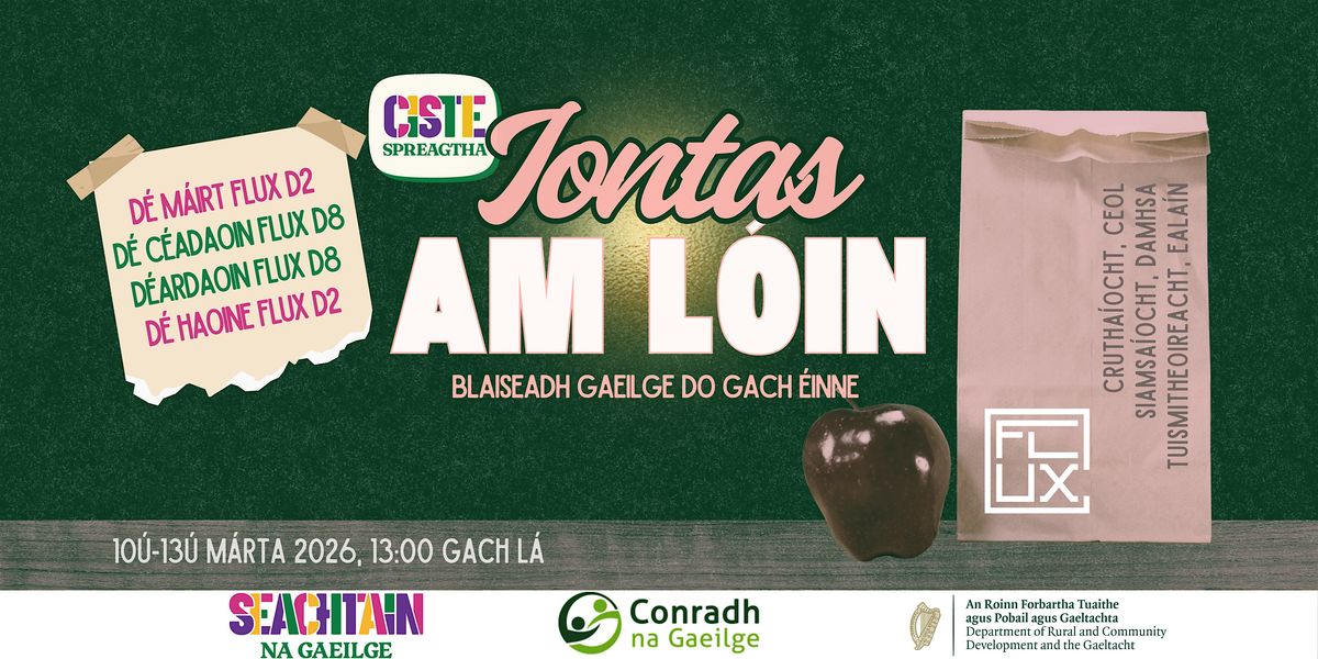 Welcome to Iontas Am-Lóin, a free creative workshop series for Dubliner's during Seachtain na Gaeilge 2026.