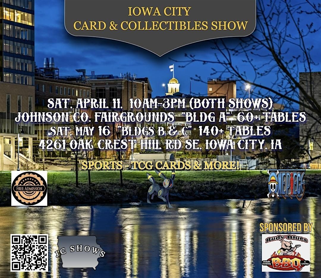 #JCShows #jcshowsia #CardShow #SportsCards #TCG #IowaCity #CollectiblesShow #Pokemon #MTG #OnePieceCards #RudyBluesBBQ #IowaEvents