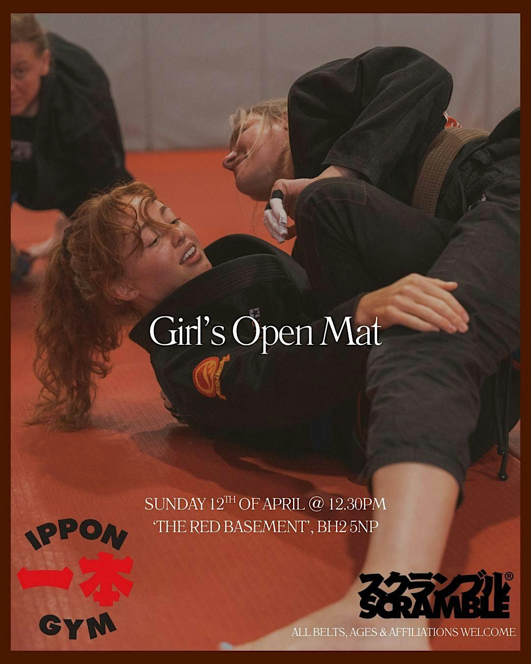 Welcome to Ippon's Girl's 2nd Open Mat event at Ippon Gym! Join us on April 12, 2026 at 12:30 PM for a fun and empowering session. It's a great opportunity to come together and roll—whether in gi or no gi—regardless of experience level.