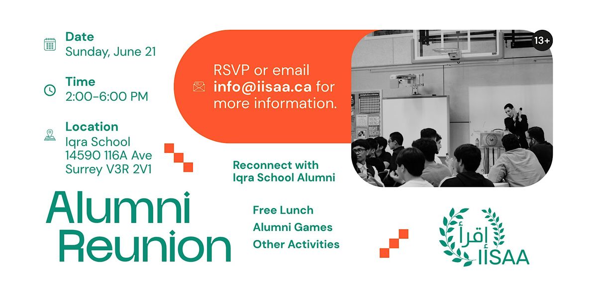 If so, you are invited to the upcoming Reunion event of the alumni-led Iqra Islamic School Alumni Association (IISAA)! Join us for an afternoon of food, friends, memories and fun!