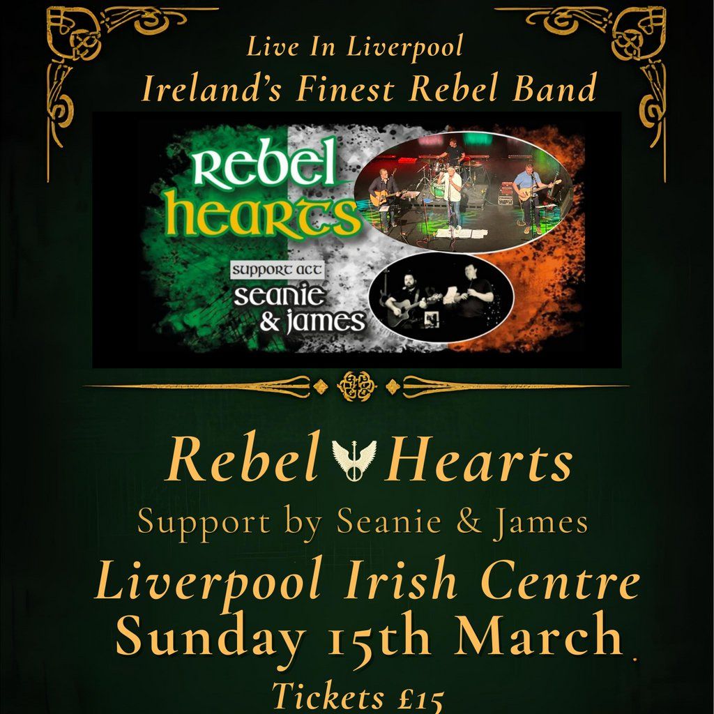Join the unforgettable St Patrick's Celebrations with Irelands Finest Rebel Band!!!Rebel Hearts live @Liverpool Irish Centre on Sunday 15th March 7pm
