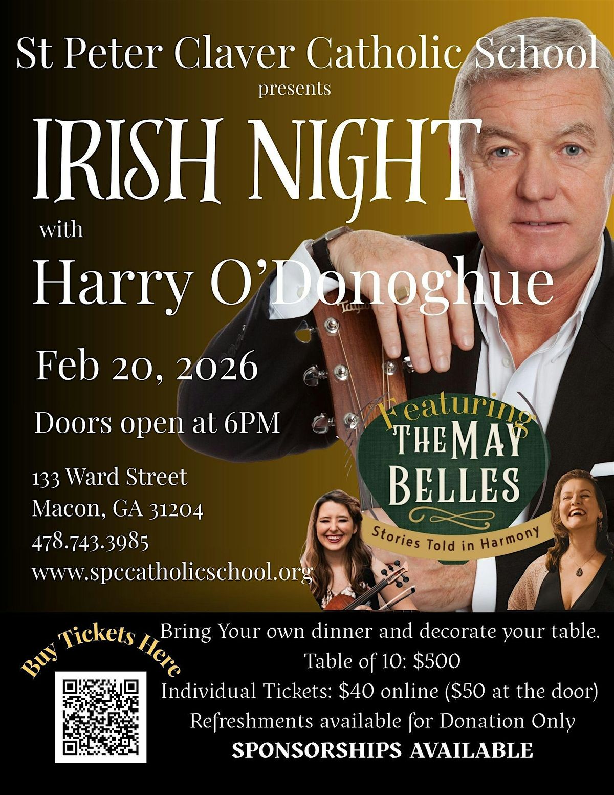 Welcome to Irish Night with Harry O'Donoghue at SPCCS! Get ready to enjoy a night filled with traditional Irish music and lively entertainment.