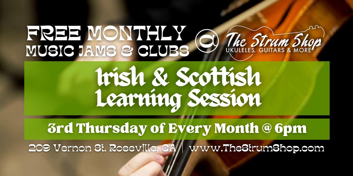 We are a learning session for beginning to intermediate players of various traditional and non-traditional instruments to learn and develop our ability to play new and familiar Irish and Scottish traditional tunes, and learn the etiquette and various techniques needed to participate in a traditional Irish session. We are all learning together and welcome everyone, but intermediate/advanced players who have a great deal of experience with Irish sessions, or who are experts with their instruments should bring their patience and be willing to support new players.
