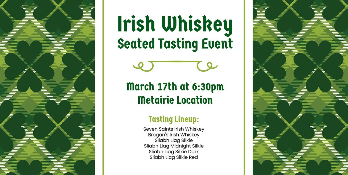 Celebrate St. Patrick’s Day with a seated Irish whiskey at Martin’s in Metairie! Guests will enjoy a curated lineup of Irish whiskeys alongside Irish tasting plates designed to complement each pour.