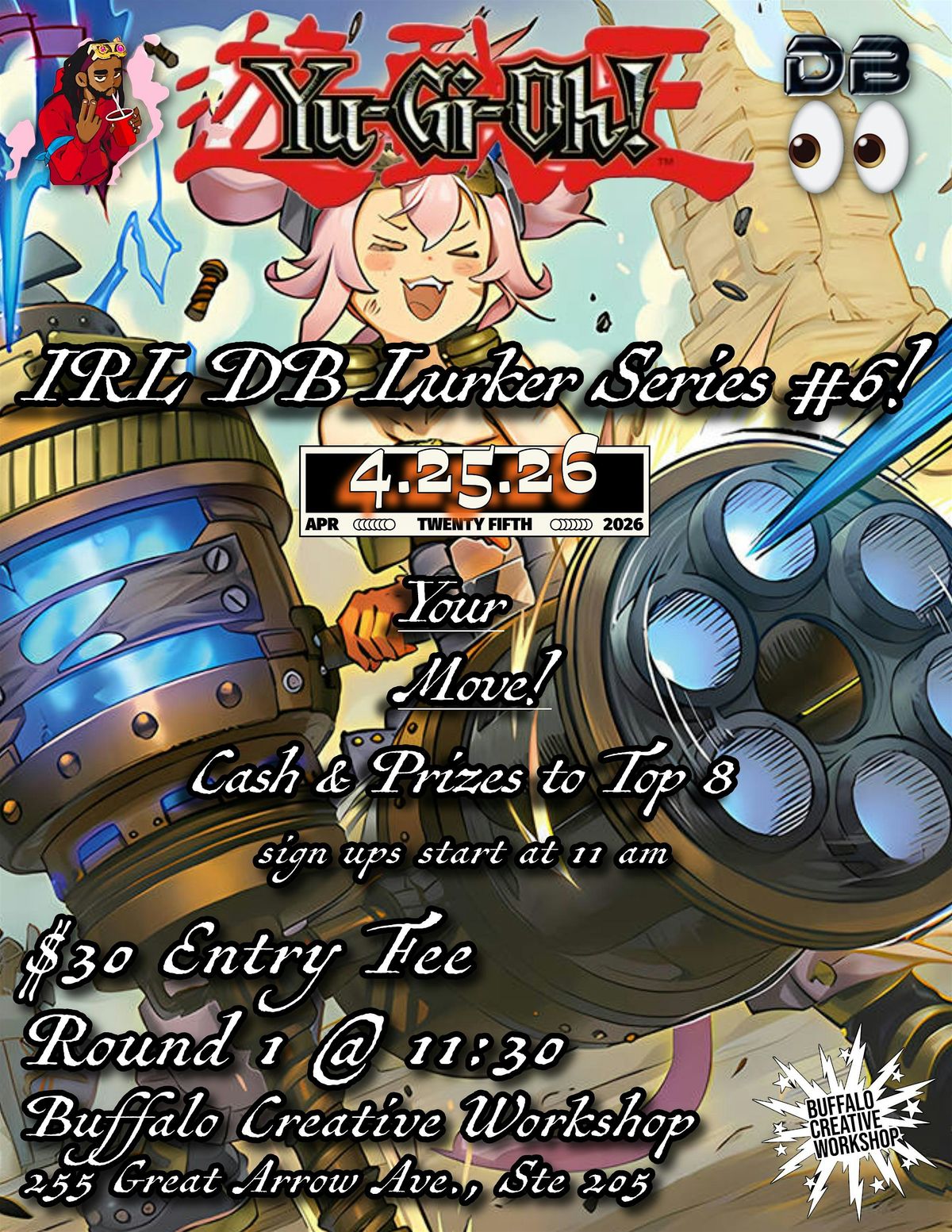 This event will be organized by the DB Lurker. Your ticket includes the buy in fee and a free bag of swag at check-in.