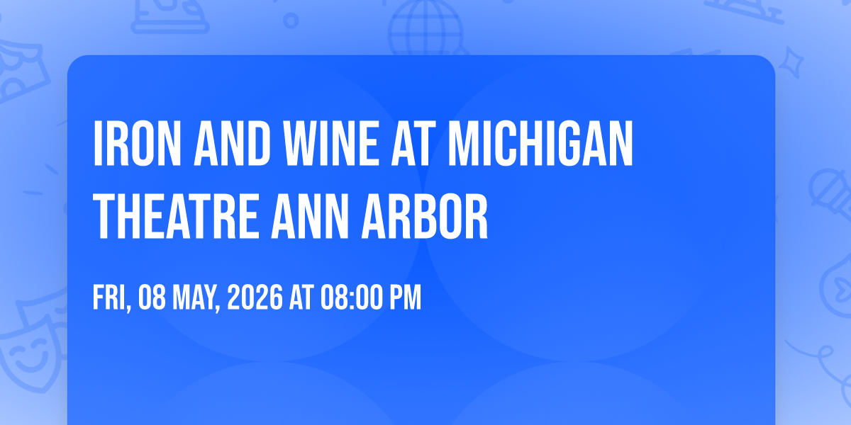 ✨ Embark on an extraordinary journey at Iron and Wine at Michigan Theatre Ann Arbor, where every moment promises to be unforgettable! 🌟 Imagine of transforming Michigan Theatre Ann Arbor in the heart of Ann Arbor, MI into a realm of endless possibilities. 📅 Join us on May 8th, 2026 at 08:00 PM for an experience that will challenge your imagination and exceed your expectations. 🎯 This carefully curated event combines the finest elements of entertainment, innovation, and community spirit. Whether you're an adventure seeker, culture enthusiast, or someone looking for unique experiences, this event offers something special for everyone. 🎊 Don't miss this chance to be part of something extraordinary!