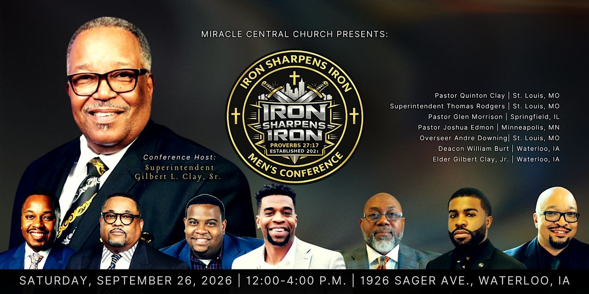 Miracle Central Church presents the 5th Annual Iron Sharpens Iron Men’s Conference: 100 Men in Black—a regional gathering designed to equip, strengthen, and refine men for Kingdom leadership.