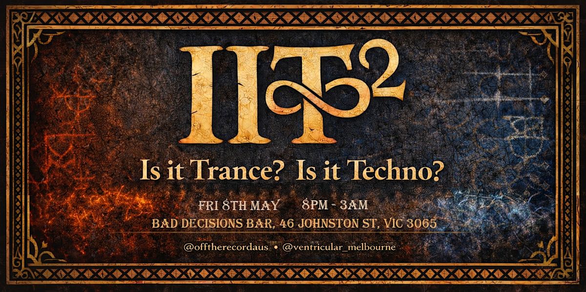 Featuring a huge cast of local Melbourne DJ talent, hand-picked to support a massive trio of headliners, IIT^2 promises to be a night to remember for Trance and Techno fans alike.
