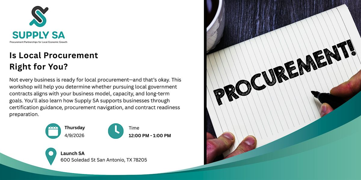Not every business is ready for local government contracts — and that’s okay. This workshop will help you assess whether pursuing opportunities with our 14 partner agencies (including SAWS, CPS Energy, Port San Antonio, Bexar County, University Health, and more) aligns with your business model, operational capacity, and long-term goals.