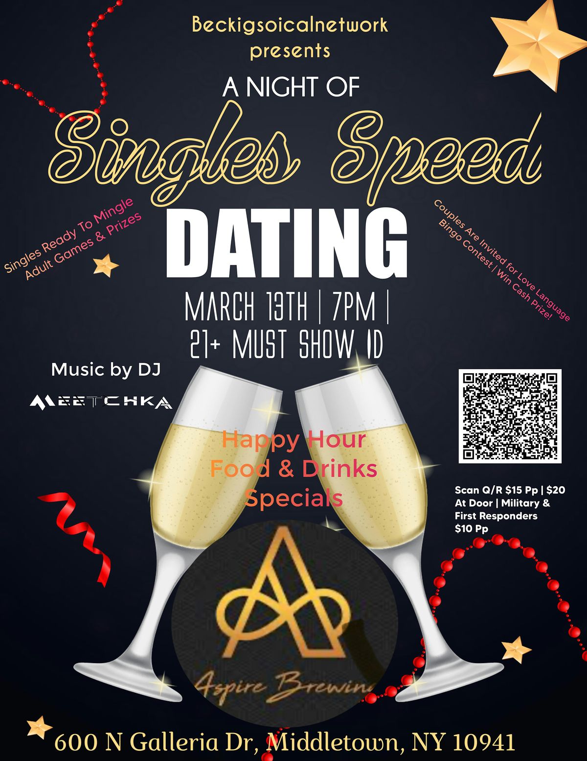 Ready to mix fun and flirting? Join us in person at Aspire Brewing in Middletown, NY for a unique speed dating experience! Whether you're looking for a spark or just want to meet cool new people, this event is all about connection and good vibes. So, bring your best self and get ready to find out if love really is blind!