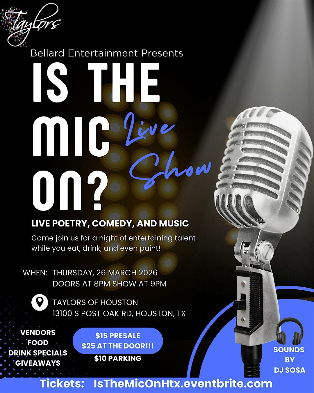 Bellard Entertainment is taking over Taylor's of Houston for the big night!