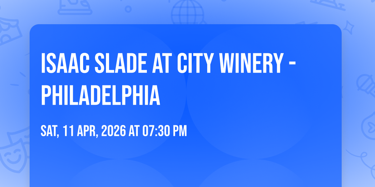 โจ Experience the magic of Isaac Slade at City Winery - Philadelphia, where moments become memories that last a lifetime! ๐๏ธ The iconic City Winery - Philadelphia in Philadelphia, PA sets the perfect stage for an unforgettable celebration on April 11th, 2026 at 07:30 PM. ๐ It's been a curated experience that brings together the best of entertainment and innovation, creating an atmosphere of wonder and excitement. From the moment you arrive, you'll be immersed in a world where the ordinary transforms into the extraordinary. ๐ Book early to secure your place in what promises to be an event that will be talked about for years to come!