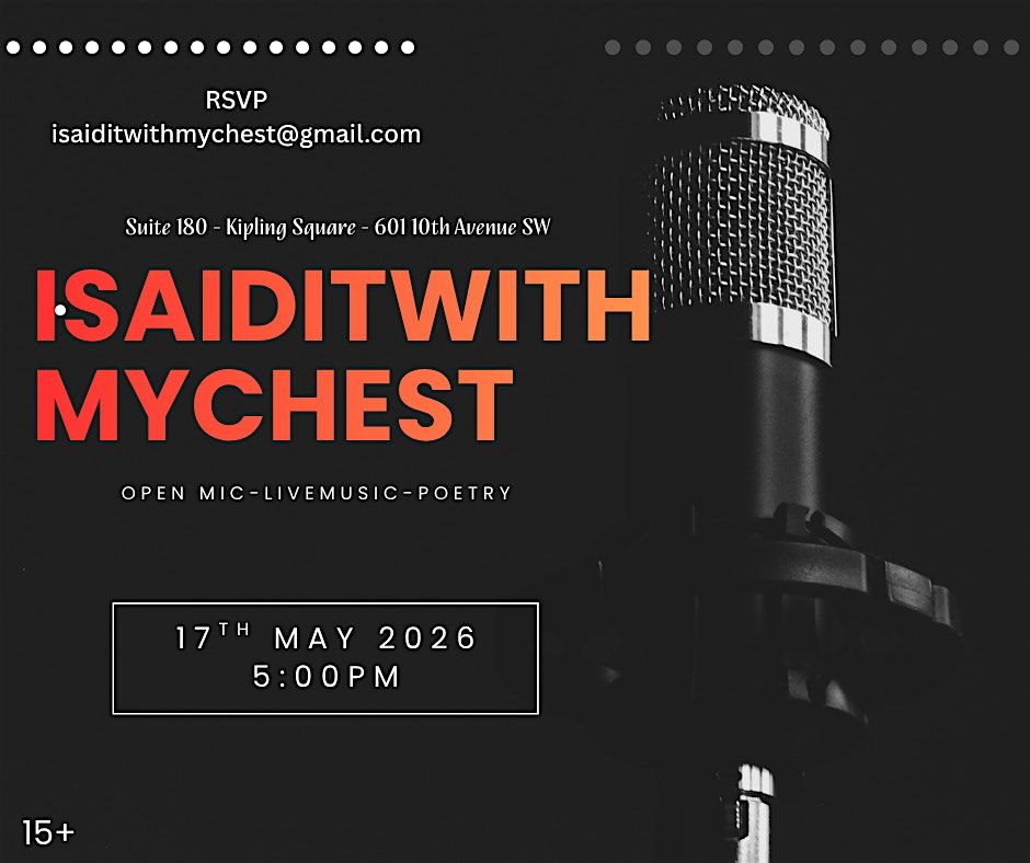 Get ready to express yourself at ISAIDITWITHMYCHEST, an awesome in-person event where your voice really matters. Dive into a chill space filled with cool people, great vibes, and lots of opportunities to share what's on your mind. Whether you’re here to listen or speak out, it’s all about connection and real talk. Don’t miss out on this unique chance to be heard and inspire others!