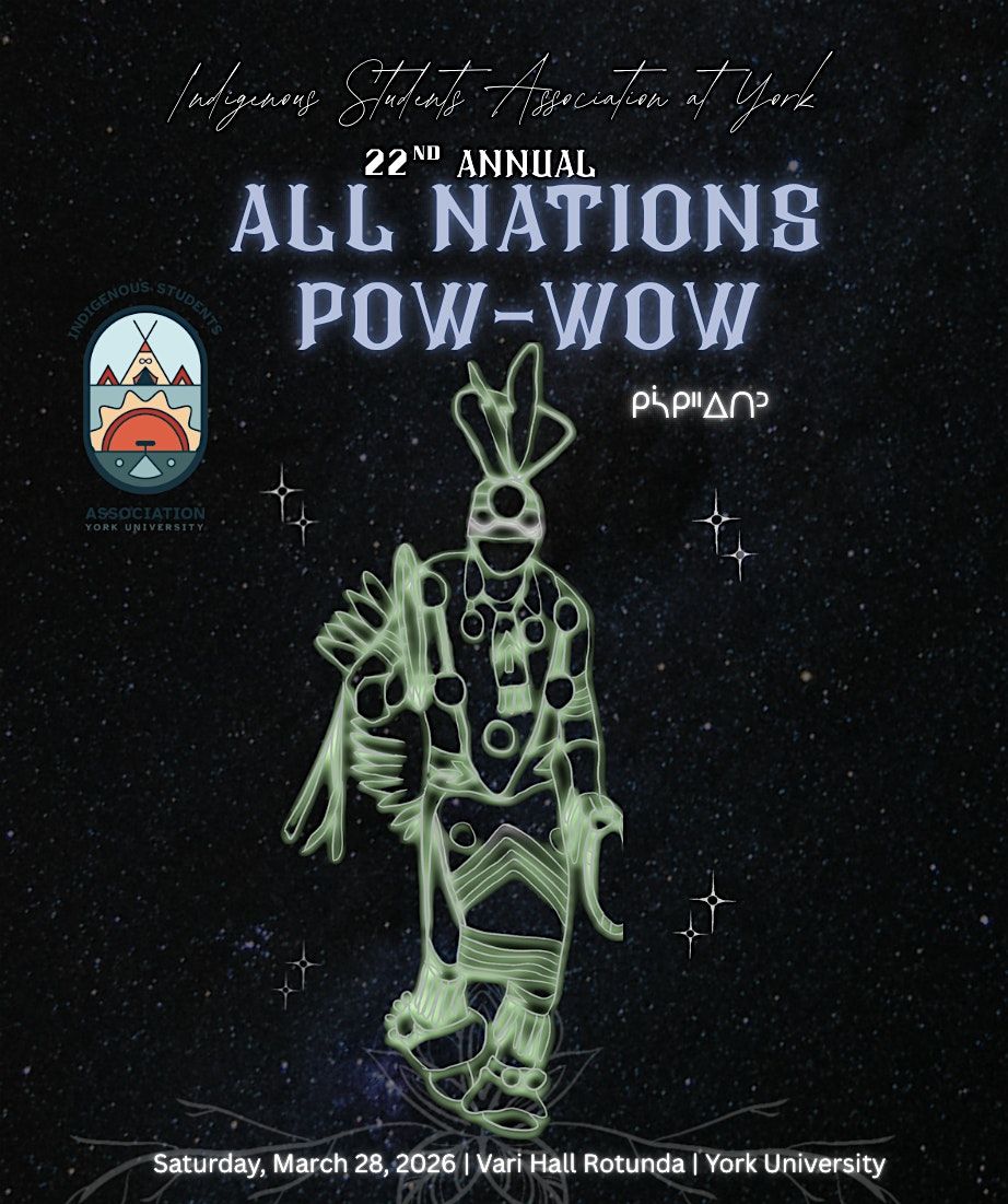 All Nations Powwow will end our Indigenous @ York series: Pipe Ceremony and Feast in the morning, Dancer Registration, Grand Entry, Indigenous Spring Market (20+ Vendors), Food Trucks, Prizes and Specials hosted by ISAY and Powwow Committee.