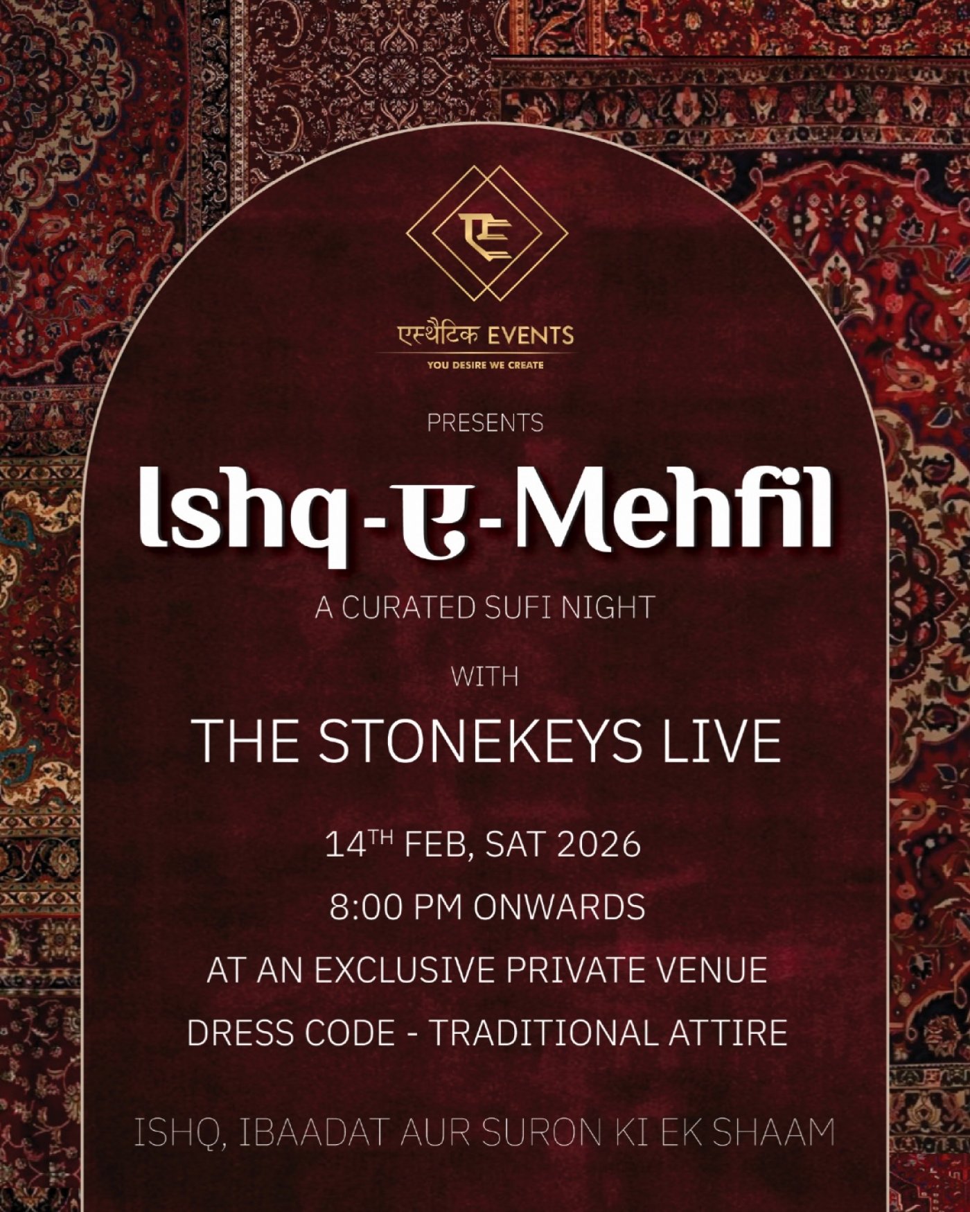 Ishq-E-Mehfil brings together soulful qawwalis, reflective shayari, and an intimate Sufi atmosphere, curated to be felt, not rushedð