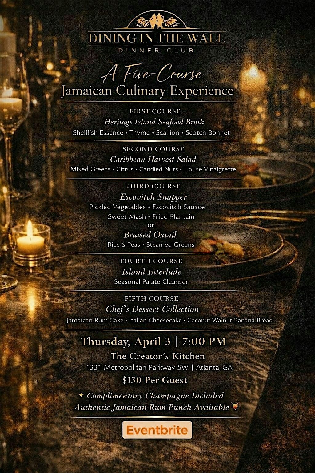 Dining in the Wall Supper Club invites you to an intimate culinary evening curated by Executive Chef Amilco Douglas, a private chef known for creating unforgettable dining experiences that blend storytelling, culture, and elevated cuisine.