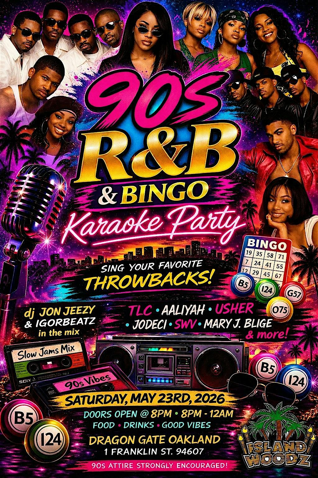 COME DRESSED IN YOUR 90S ATTIRE … BE READY TO SING YOUR FAVORITE 90s RNB SONGS WHILE PLAYING BINGO & WIN PRIZES OR THE BIG CASH GRAND PRIZE