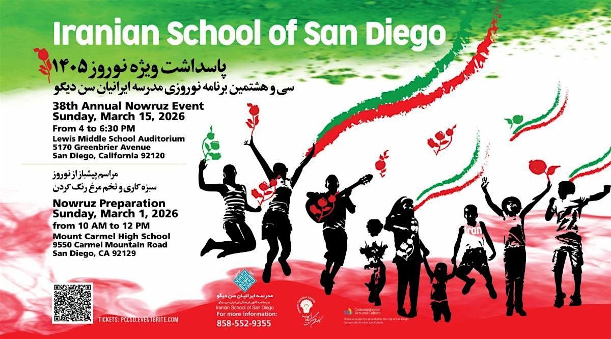 The ISSD 38th Nowruz is scheduled for Sunday, March 15, 2026, from 4:00 to 6:30 p.m. at the Lewis Middle School Auditorium. The program starts promptly at 4 pm. The tickets are available via Eventbrite. Please click the link and purchase tickets for yourself and your child/student/dancer. Students who perform during the program also need to purchase tickets. Everybody who attends must purchase a ticket. The program consists of performances of songs, dances, a play, and music by students. Snacks and drinks will be available at intermission.