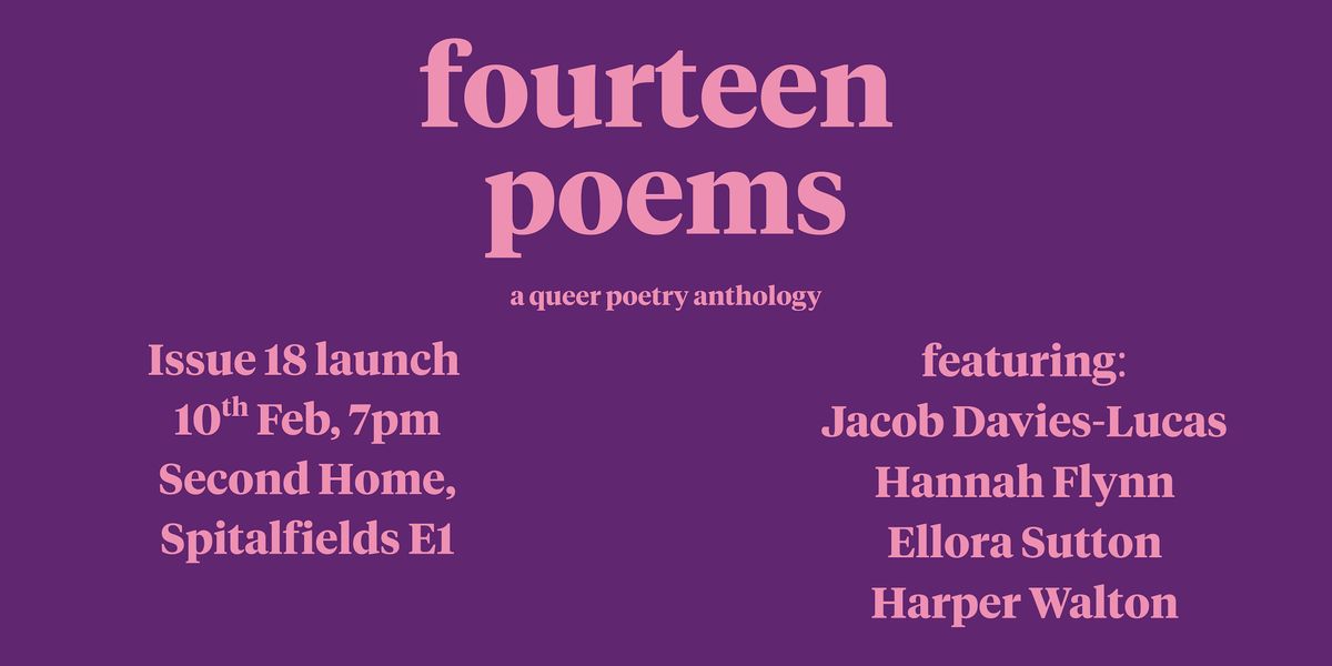 Get ready for an evening celebrating queer poetry and the release of Issue 18 of fourteen poems, featuring four of the poets featured in the latest issue.