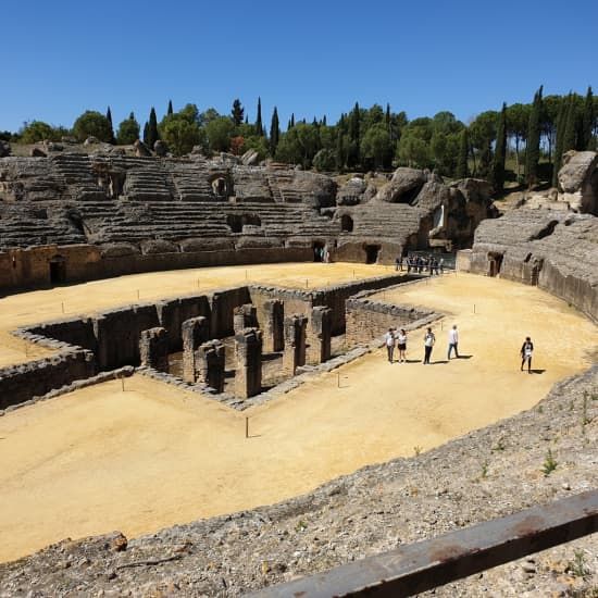🎁 ¡Regala esta experiencia a tus seres queridos! Haz clic aquí para ver nuestra tarjeta de regalo. Qué vas a disfrutar 🌳 Una visita por la antigua ciudad romana de Itálica ✨ El tercer anfiteatro más grande del mundo 👉 Una visita ideal para amantes de la historia y la arqueología Información 📅 Fecha y hora: selecciona la fecha y hora que quieras directamente en el selector de entradas 📍 Punto de encuentro: Itálica, Sevilla 👤 Edad: todos los públicos 🗣️ Este tour está disponible en inglés, español, francés o italiano 🚩Después de comprar tu ticket en Fever, es imprescindible seguir las instrucciones que encontrarás en tu email de confirmación de compra para completar tu reserva. Descripción Descubre la antigua ciudad romana de Itálica con una visita guiada en el yacimiento arqueológico de Santiponce. Explora las calles, mosaicos y casas como la Casa de Neptuno y la Casa de los Pájaros. Admira el imponente Anfiteatro, el tercero más grande del mundo, y el Teatro Romano, uno de los mejor conservados de Europa. Una experiencia única para conocer la historia de los emperadores Adriano y Trajano y viajar al pasado de la antigua Roma. ¡Consigue tus entradas para Itálica: visita guiada a las ruinas romanas de Santiponce!