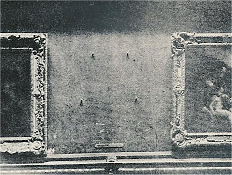 Image: Louvre Museum, empty space due to the lack of the portrait of Mona Lisa by Giocondo, after the theft of 1911.