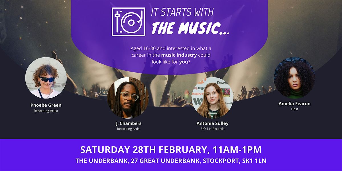It Starts With The Music... is an opportunity for young people (aged 16-30) from Stockport to connect with upcoming and established music industry execs who also have roots in Stockport or Greater Manchester themselves.