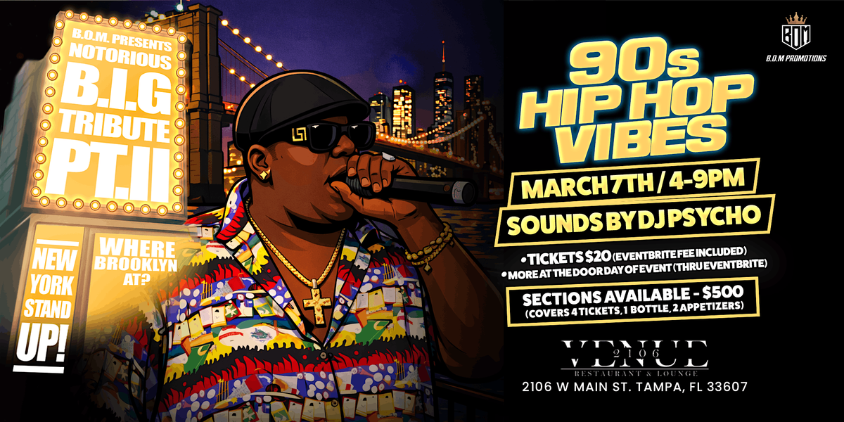 Join us for a day filled with 90's Hip Hop & RnB, fun, and celebration as we pay homage to the legendary Notorious B.I.G. We bringing Straight East Coast NYC Vibes to Venue 2106, located at 2601 W Main St.