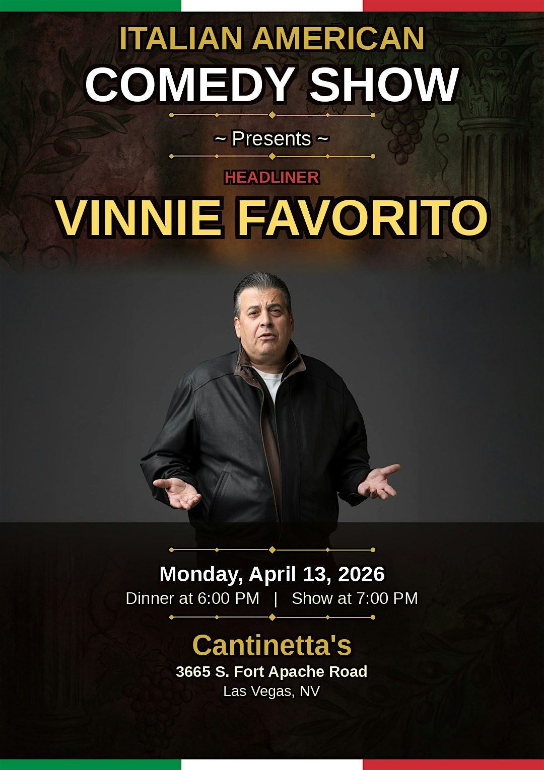 Vinnie Favorito has been headlining Las Vegas since 2003, cutting his teeth at the Improv and the Comedy Store in Los Angeles before becoming the city's go-to insult comic. His show typically opens with a monologue, then shifts entirely to the audience — where observations, roast-style insults, and commentary on current events collide into something completely unrepeatable. No two shows are the same. Everyone in the room is fair game — no one is safe.