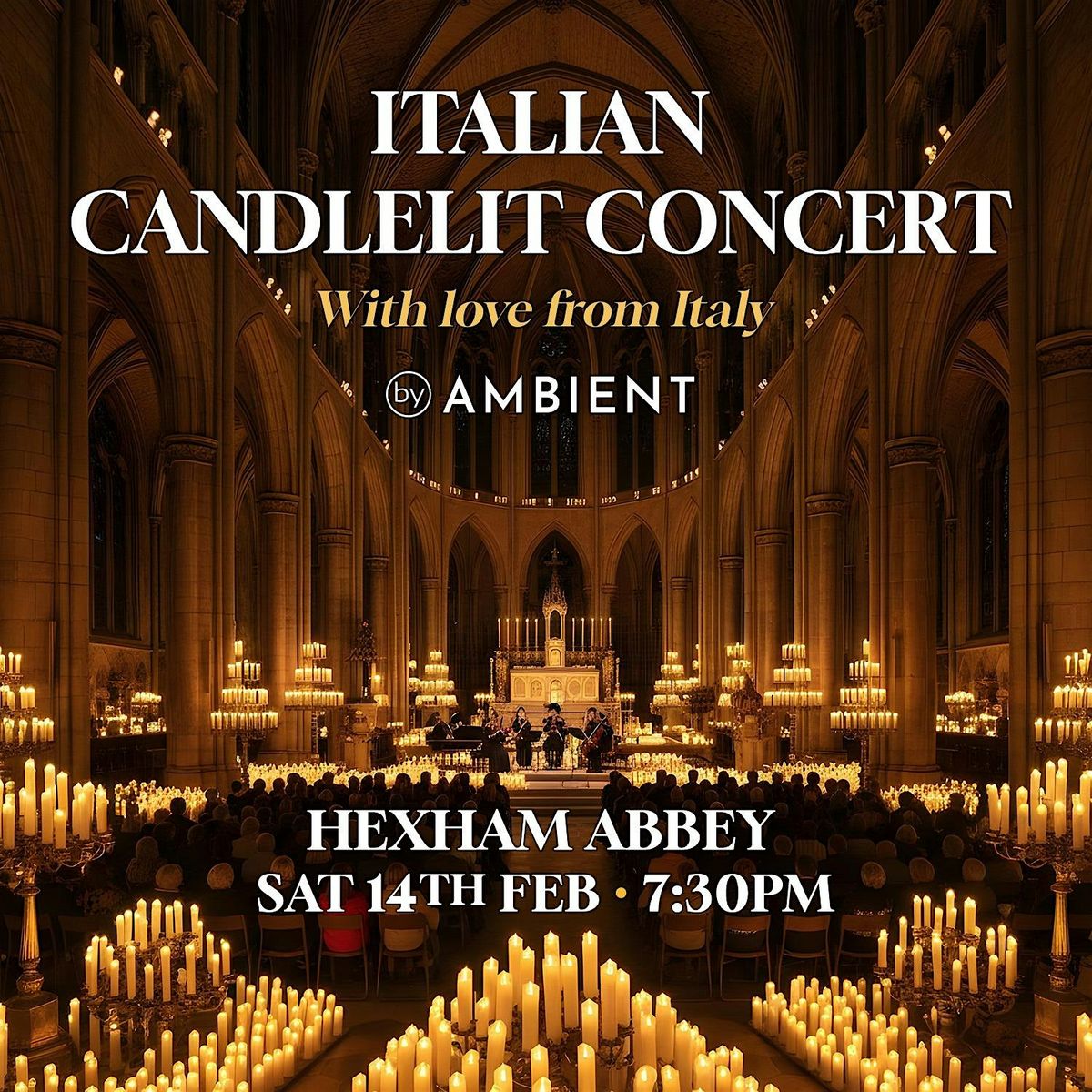 Let the glow of candlelight, spectacular music and the beauty of Hexham Abbey transport you to romantic Italy!
