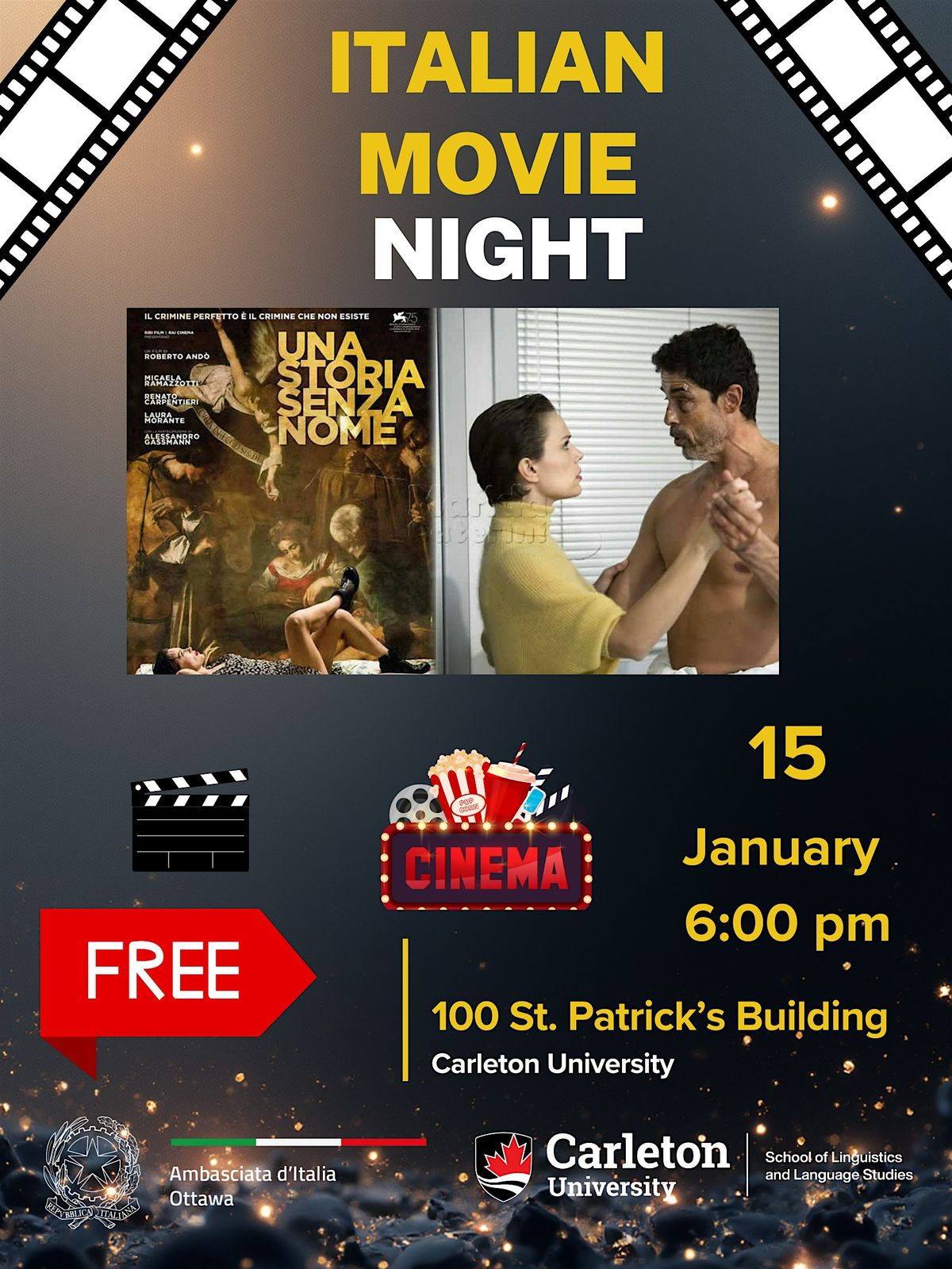 The Italian Embassy, together with the School of Linguistics and Language Studies (SLALS) at Carleton University, is pleased to invite you to another special Italian film screening!