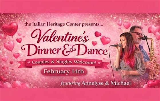 Celebrate Valentine’s Day with an unforgettable evening of great food, live music, and dancing at the Valentine’s Dinner & Dance, presented by the Italian Heritage Center. Taking place on Saturday, February 14th in the Columbus Room, this event is open to the public and welcomes both couples and singles. The bar opens at 5:00 PM, followed by dinner at 5:30 PM, and live music and dancing from 6:30 PM to 10:00 PM, featuring Annelyse & Michael, performing crowd-pleasing favorites perfect for the dance floor. Enjoy a delicious dinner menu including Caprese Bites, Shrimp Cocktail, Garden Salad, Oven Roasted Pork Loin with apples, Chicken Cordon Bleu, Roasted Potatoes, Brown Sugar Glazed Carrots, Green Beans with Almonds, and a sweet dessert selection of Whoopie Pies, Apple Crisp, and Sweetheart Cupcakes. Tickets are $45 per person, include free parking, and promise a fun, welcoming night whether you’re celebrating with a date, friends, or coming solo to meet new people.
