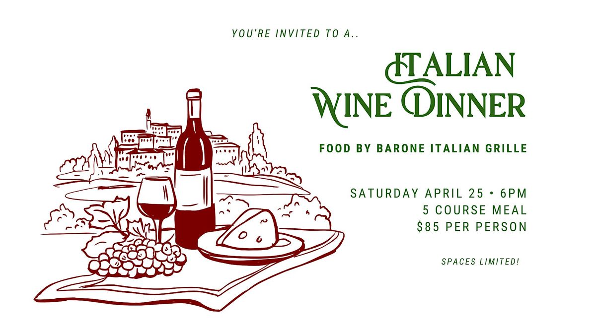 Take a journey through Italy while sipping fine wines, expertly paired with authentic Italian classics from the Barone Italian Grille food truck. This 5-course meal will feature unique wine pairings with each course, and bottles will be available to take home afterwards. Whether you're a wine enthusiast or a food lover, this event promises a memorable evening that celebrates the rich history of Italy.