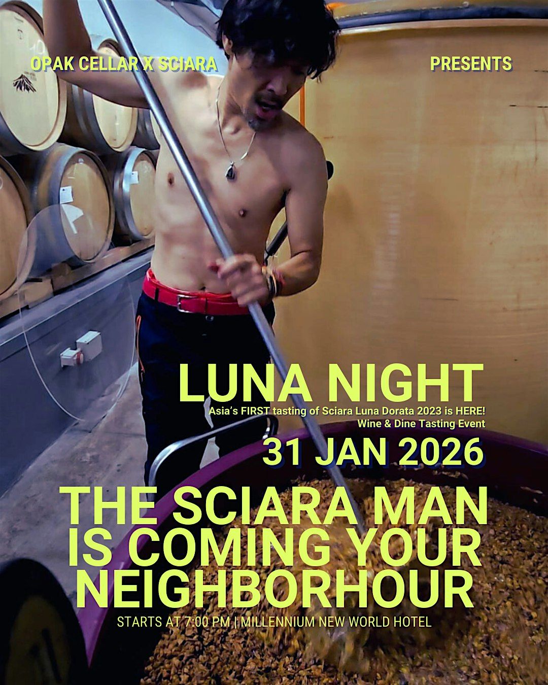 Welcome to the Italy SCIARA Wine Tasting Dinner at OPAK CELLAR! Join us at New World Millennium Hong Kong Hotel on January 31, 2026 at 7:00 PM (Asia/Hong_Kong Time). Indulge in a delightful evening filled with exquisite wines and gourmet cuisine. Don't miss this opportunity to savor the flavors of Italy in a luxurious setting. Get ready to elevate your taste buds and enjoy a memorable culinary experience. See you there!