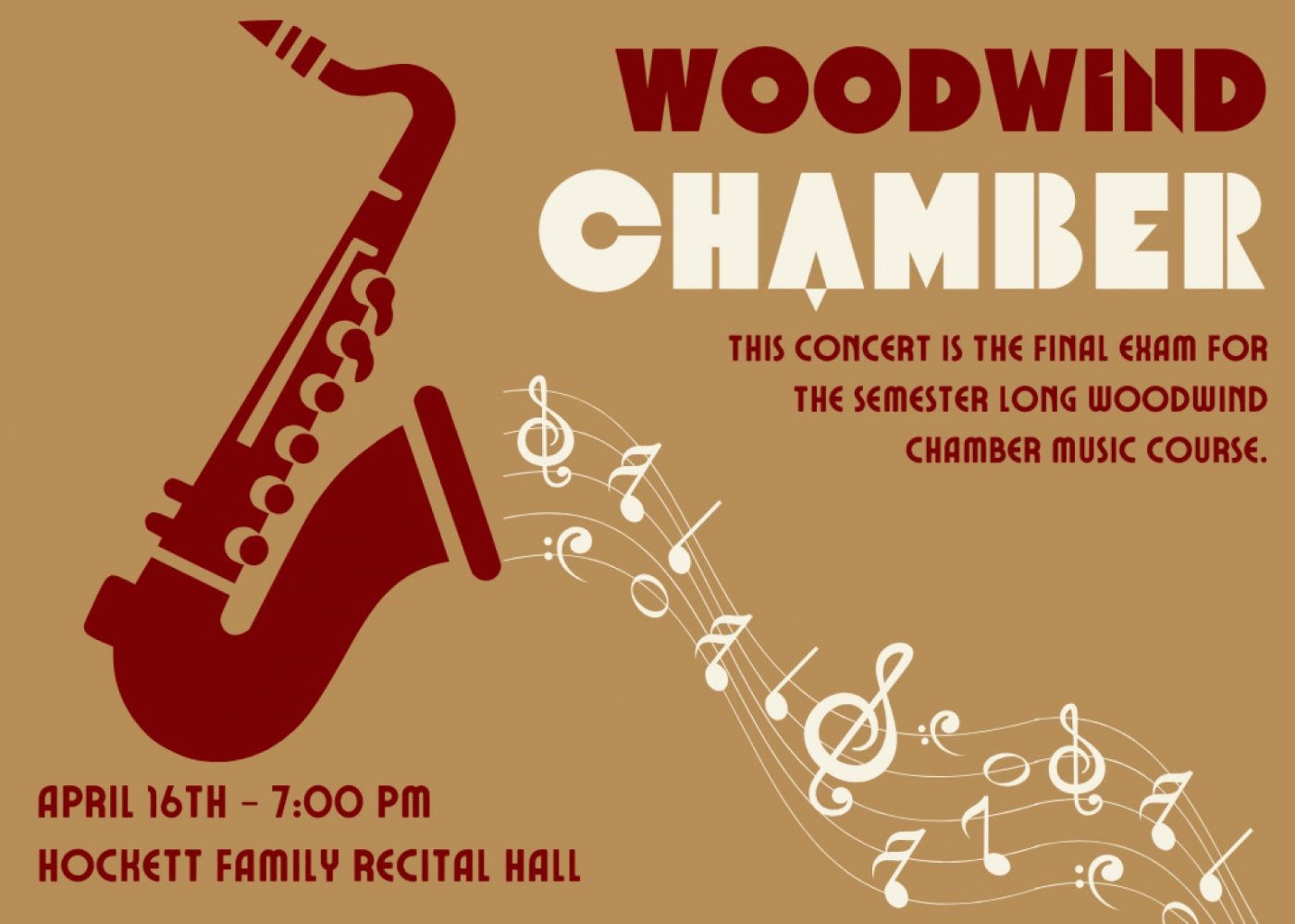 This concert is the final exam for our semester long woodwind chamber music course. All groups performing are small, unconducted and autonomous ensembles of 3-5 players. The program reflects repertoire selected by students and woodwind faculty collaboratively.