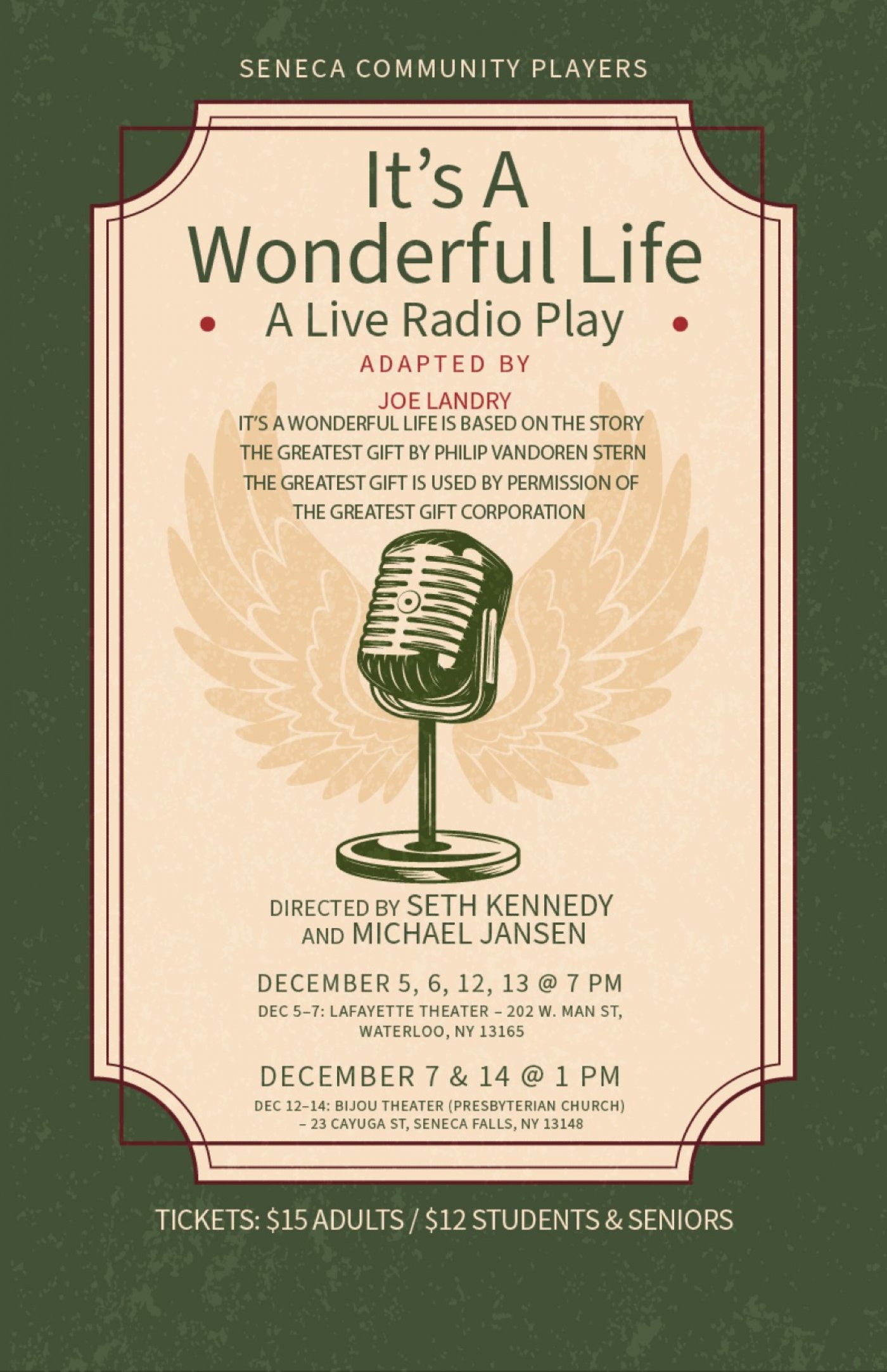 This beloved American Classic comes to captivating life as a live 1940's radio broadcast. Get a front row seat in the studio audience as talented voice and sound effect actors recreate live and in person the story of idealistic George Bailey as he considers ending his life one fateful Christmas Eve only to be befriended by a guardian angel who helps him learn how he has a truly wonderful life. Packed with iconic scenes and voices sure to spur that nostalgic Christmas feeling It's A Wonderful Life: A live Radio Play is certain to become a holiday favorite