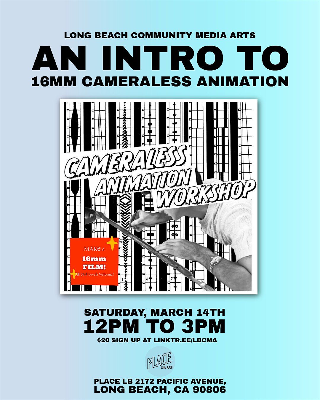 What is cameraless animation, you ask? It’s a super fun and liberating technique where footage is produced by creating the images directly onto film stock using pens, paint, stickers, flowers, paper, plastic bags, glitter or whatever else your creative mind can conceive. So ditch the camera and start animating! All All Materials Included. All ages and experience levels are welcome!