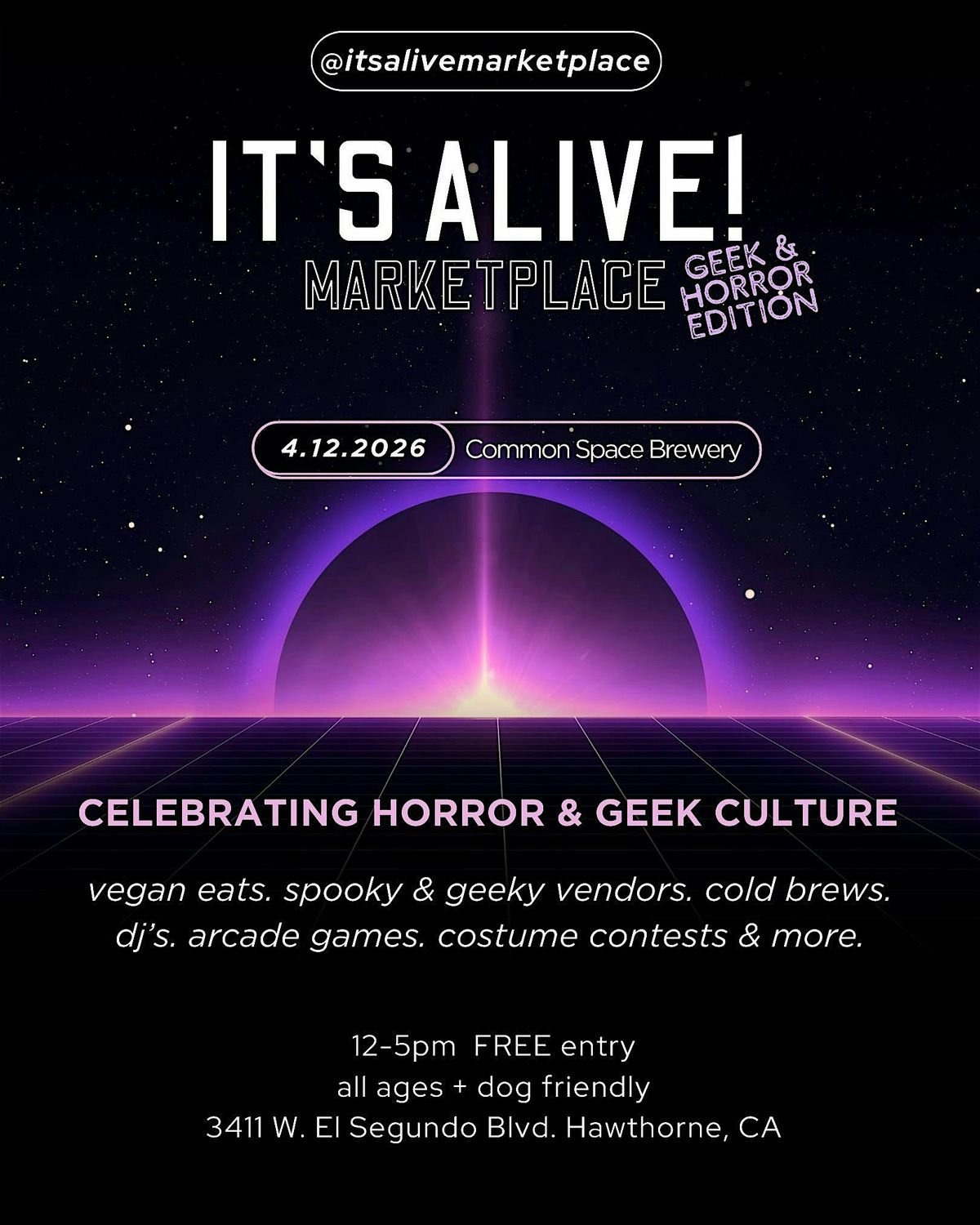 ๐พ Sunday, April 12th @commonspacela ๐ท๏ธThe first horror-themed market with 35+ spooky & geeky vendors + video games + 100% vegan eats! FREE to attend โข All Ages โข Dog Friendly